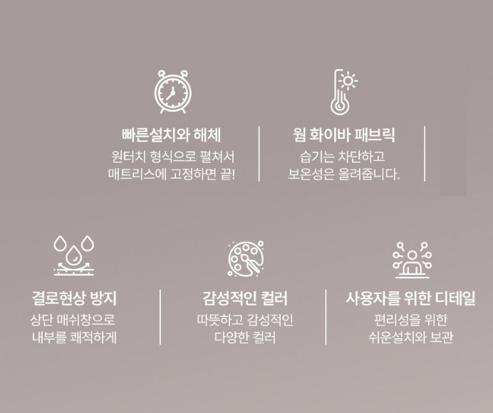 - 특장점 : 고급스러운 디자인과 뛰어난 외풍 차단력으로 겨울에도 따뜻한 환경을 제공함