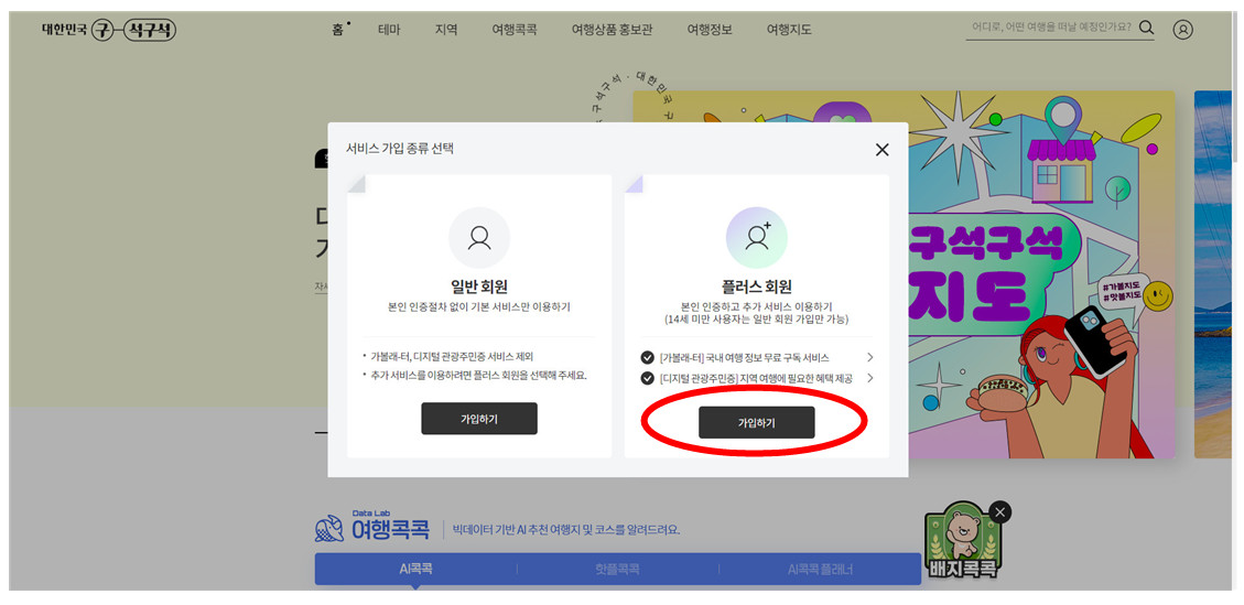 6. 플러스 회원을 선택해야 관광주민증이 발급됩니다.