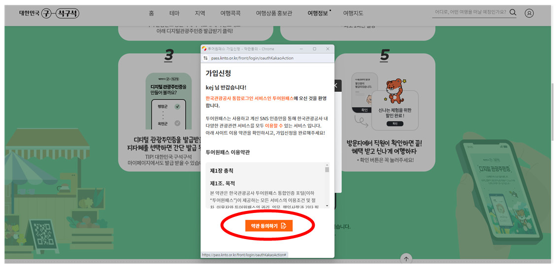 5.인증을 하고 나면 가입신청 팝업이 뜹니다. 약관에 동의 하고 가입합니다.