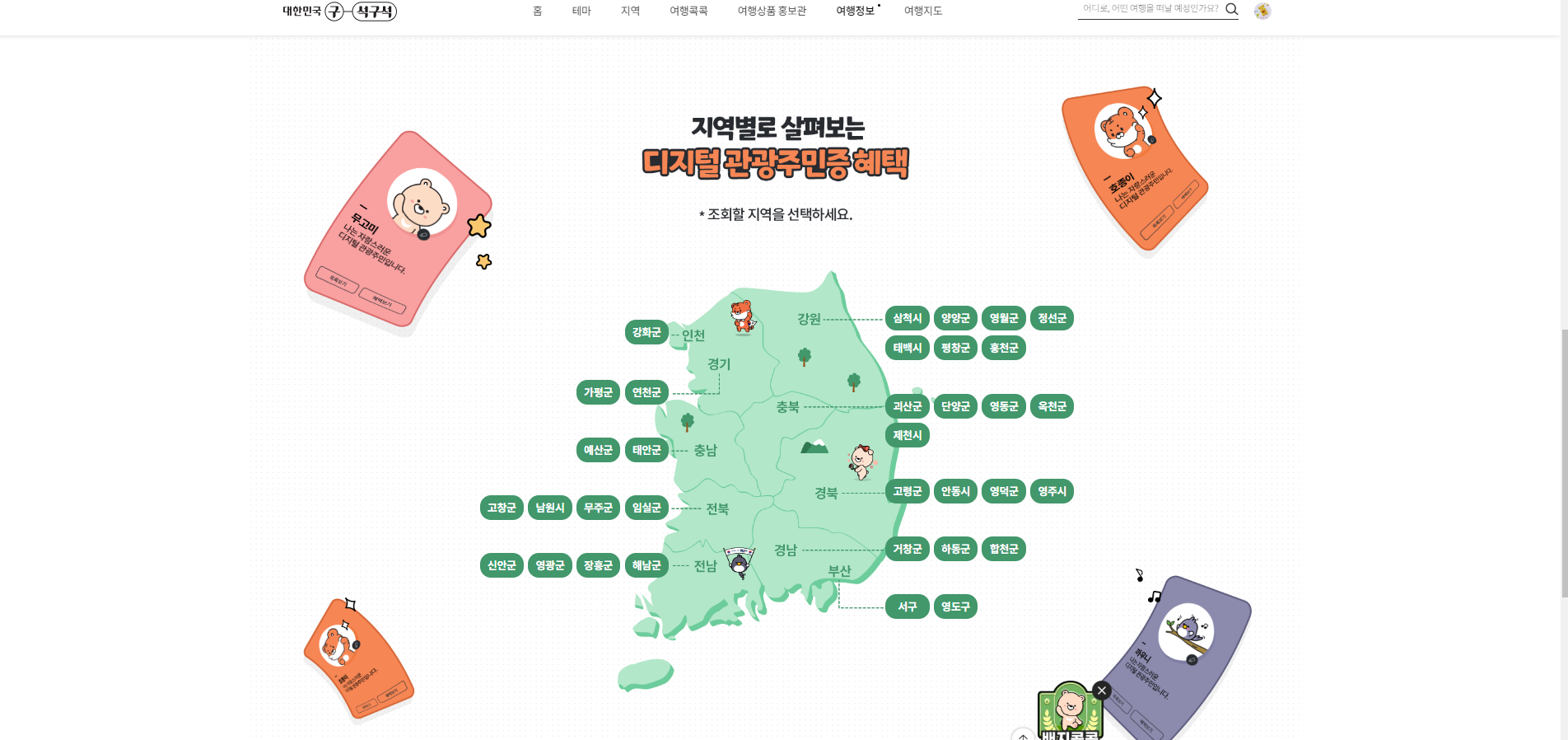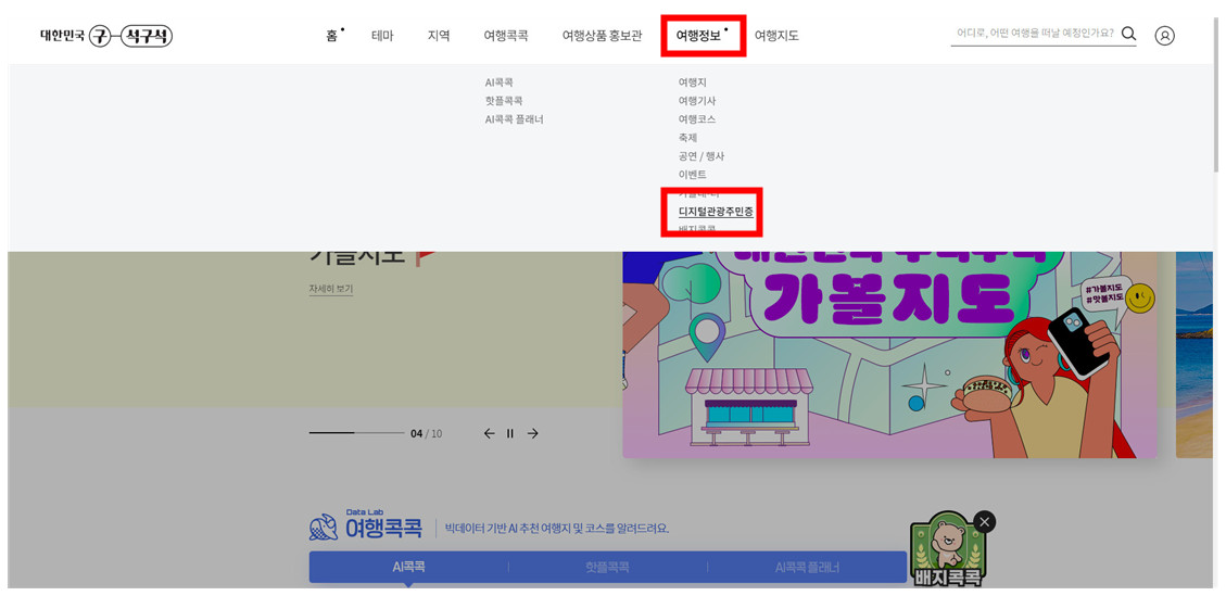9. 마지막으로 다시 여행정보 카테고리에서 디지털관광주민증을 클릭해서 이동하시면