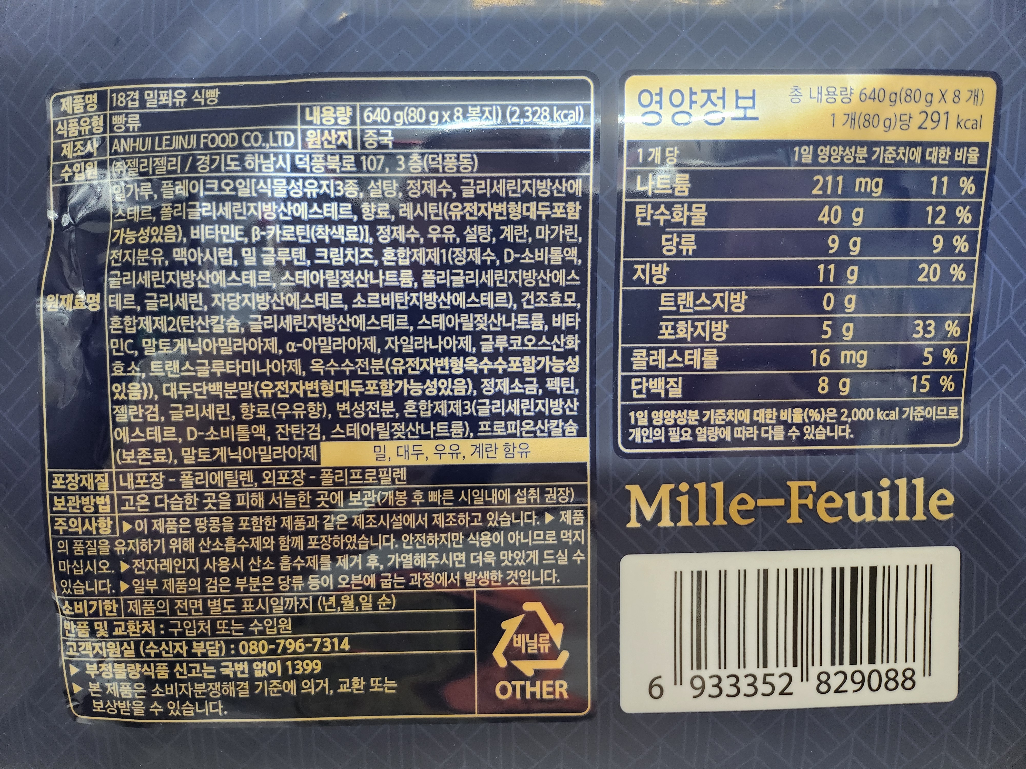 밀푀유 식빵 영양 성분