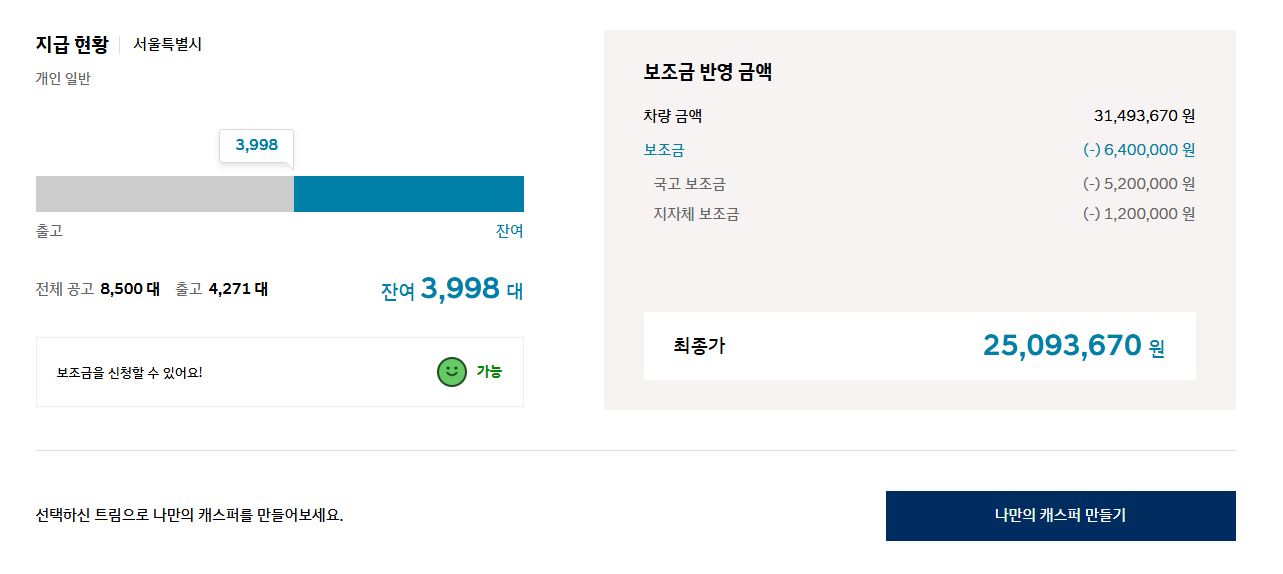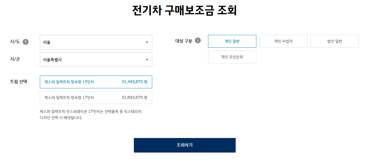 보조금을 적용한 금액을 알고 싶으시면, 보조금 조회 페이지에서 본인의 주민등록 상의 거주 지역을 선택하여 조회해 보면 됩니다. 현재 보조금을 신청할 수 있는지, 지자체별로 보조금이 얼마나 남았는지도 조회가 가능합니다.