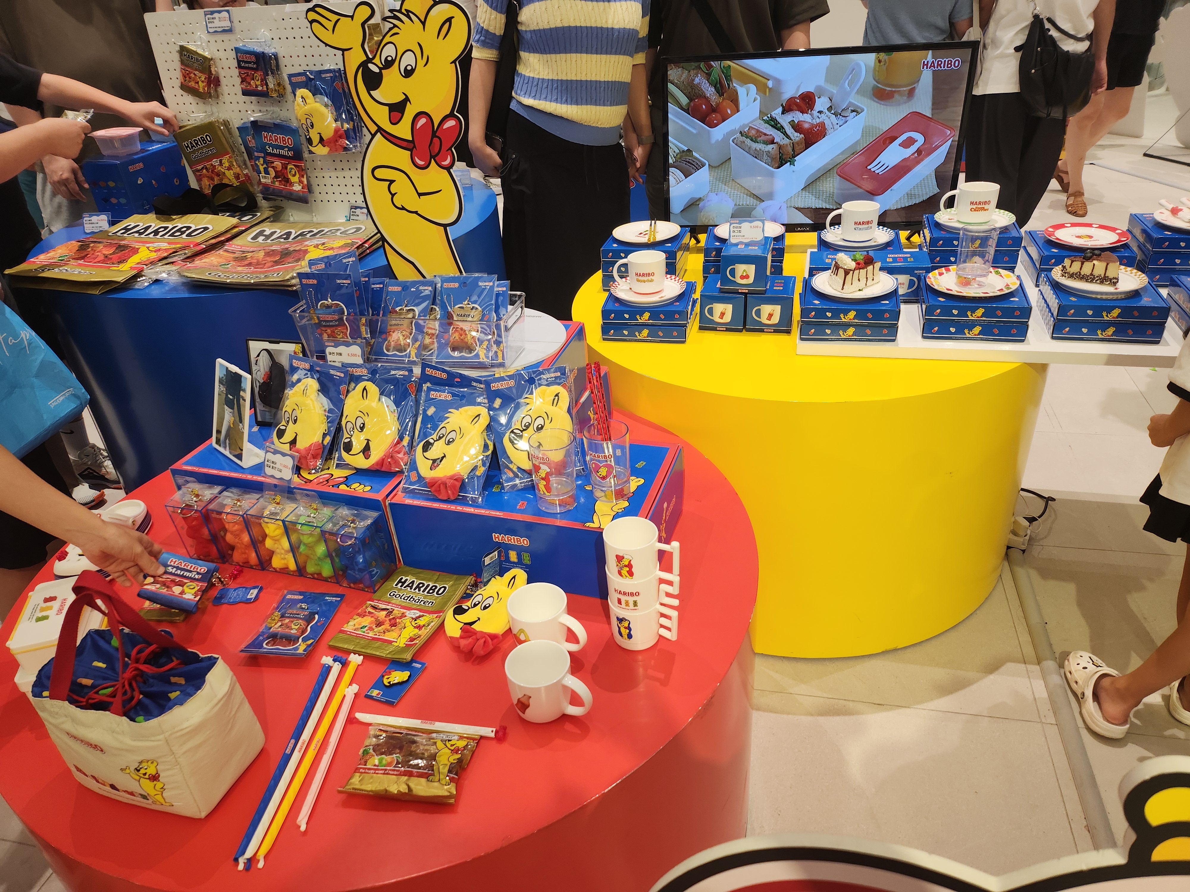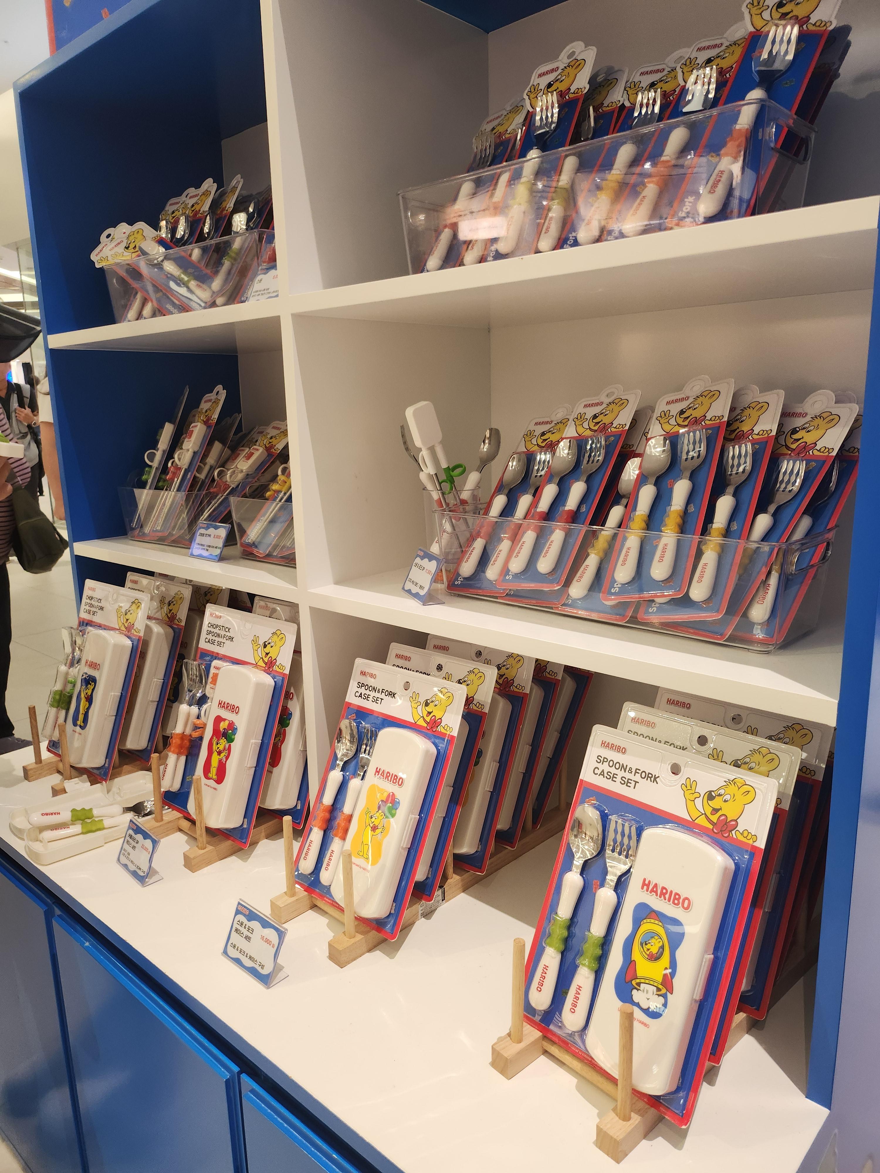 귀여운 곰돌이 젤리 모양의 키링도 있고, 하리보 캐릭터가 들어간 다양한 식기류가 있어요. 아무래도 어린아이들을 위한 제품들이 많았어요. 도시락, 숟가락, 포크 등 아이 밥그릇 종류가 무척 귀여웠답니다. 키덜트 제품으로는 키링, 가방, 파우치, 돗자리 등이 있겠네요. 찻잔도 물론 준비되어 있구요. 한 번쯤 구경해 보시는 것도 좋겠습니다.^^